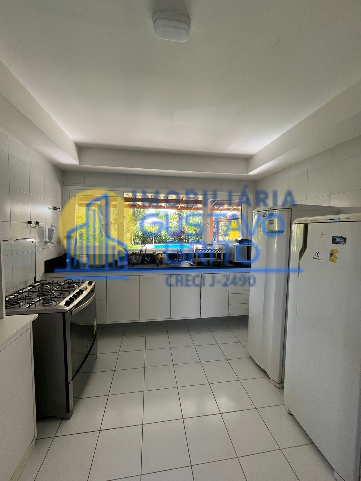 Pavimento inferior: 1 quarto, sala com três ambientes, área gourmet com churrasqueira, piscina, área de serviço com dependência.
